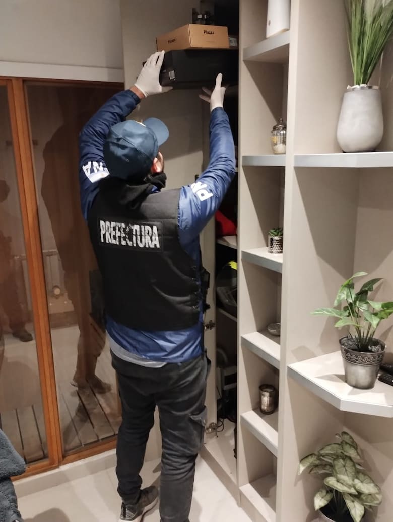 Durante los allanamientos, realizados por efectivos de la Prefectura Naval, se secuestraron dos kilos de oro en 30 lingotes, que tenían sus respectivos certificados de autenticidad, además de US$540.000, $23.000.000 y droga.