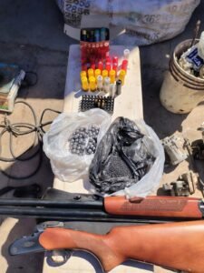 Durante el allanamiento fue secuestrada una escopeta calibre 12, marca HAWK, serie N.º 24S6361, con culata y empuñadura de madera, además de diversos cartuchos y elementos balísticos. También se incautaron 43 cartuchos calibre 12 tipo PG, 2 cartuchos calibre 12 tipo AT, bolsas con balines, 7 balas calibre 9 mm y una amplia variedad de objetos y materiales, algunos de procedencia a determinar, como cables, herramientas, equipos eléctricos, accesorios de plomería, luminarias y electrodomésticos.