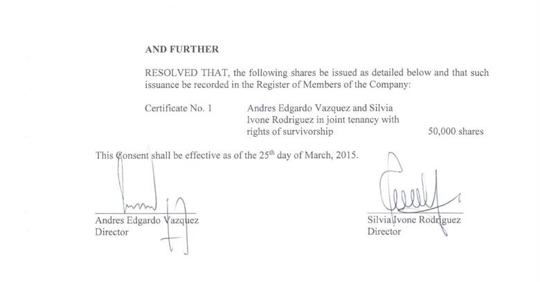 Documentos de la firma Galanthus, con Andrés Vázquez como accionista.