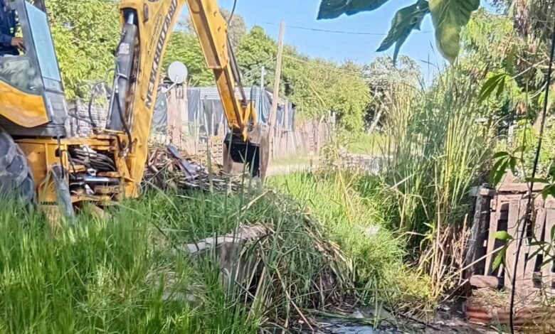 El operativo se inició a partir de un reclamo recibido en el Centro de Denuncias de la Administración Provincial del Agua, lo que permitió montar un dispositivo articulado con el municipio. Con maquinaria de la APA y un camión municipal, se procedió a la limpieza de alcantarillas y al despeje de sectores obstruidos en canales y zanjas.