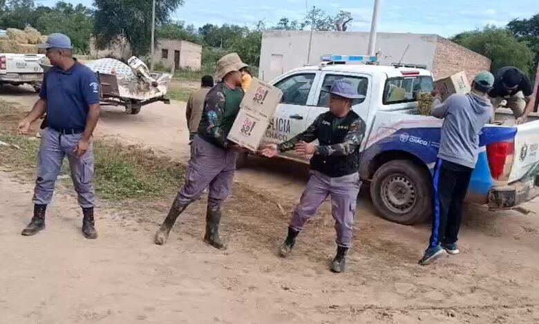 En este contexto, personal de la Comisaría de Comandancia Frías trabaja de manera continua en el acompañamiento a familias damnificadas por la emergencia hídrica, brindando asistencia directa en distintas zonas rurales.
