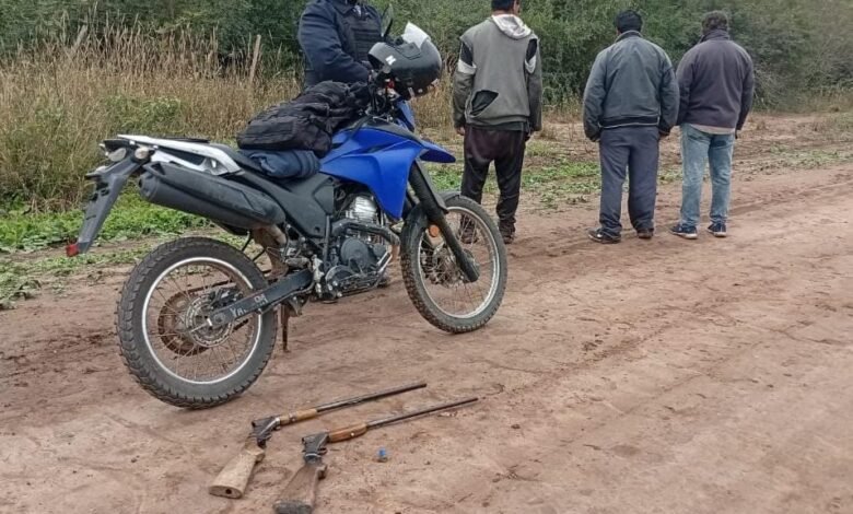 Los demorados son tres hombres de 52, 36 y 21 años quienes portaban tres escopetas calibre 16, tres cartuchos sin percutar y un cuchillo de 20 cm de longitud.