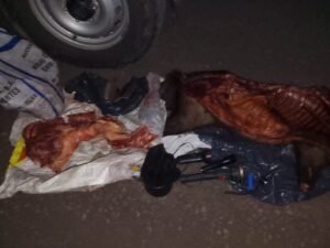 Seguidamente, al verificar el interior de las bolsas de arpillera constataron un carpincho y un chancho salvaje faenados. También, incautaron tres linternas.