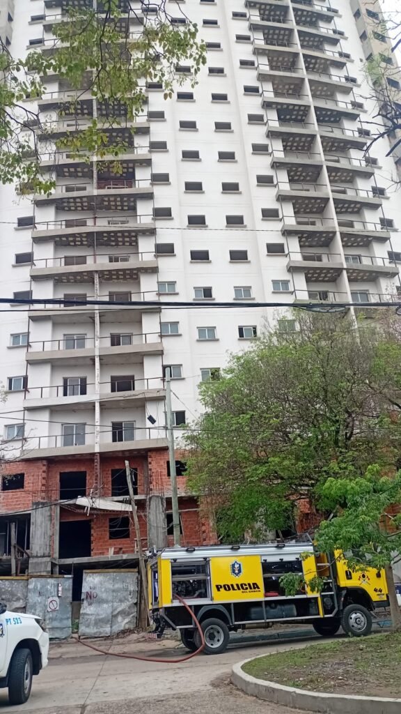 En horas de la siesta de este martes, un incendio de gran magnitud se registró en un edificio en construcción ubicado sobre avenida San Martín al 450, en Resistencia. La obra, que lleva varios años paralizada y permanece deshabitada, sufrió el siniestro en la zona destinada al estacionamiento.