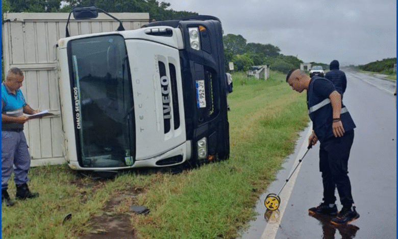Camión despistó y volcó en la Ruta Provincial 9 a la altura de Colonia Elisa