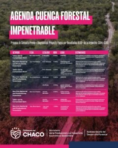 Las actividades se desarrollan a través de la Subsecretaría de Desarrollo Forestal y forman parte del Proceso de Consulta Previa y Diagnóstico para el Plan de Gestión de la Cuenca Forestal Impenetrable, en el marco del Proyecto Pagos por Resultados REDD+ de la Argentina (2014–2016).
