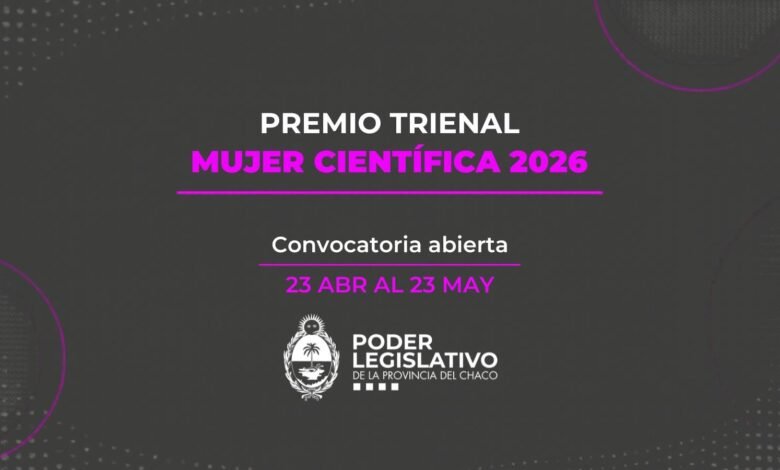 La Cámara de Diputados convoca a participar del Premio Trienal “Mujer Científica” 2026, en el marco de la Ley 4063-E, con el objetivo de reconocer y fortalecer el rol de las mujeres en el ámbito científico y tecnológico de Chaco. La convocatoria permanecerá abierta desde el 23 de abril hasta el 23 de mayo, invitando a instituciones, docentes, investigadoras y estudiantes a postular candidatas. El premio, además del reconocimiento, consiste en un incentivo económico para impulsar el desarrollo científico e investigación.