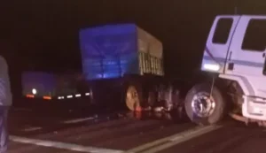 Anoche, personal de la Comisaría Cuarta Metropolitana intervino en un siniestro vial ocurrido sobre la Ruta Nacional N° 11, a la altura del kilómetro 999, en Resistencia, donde colisionaron dos camiones.