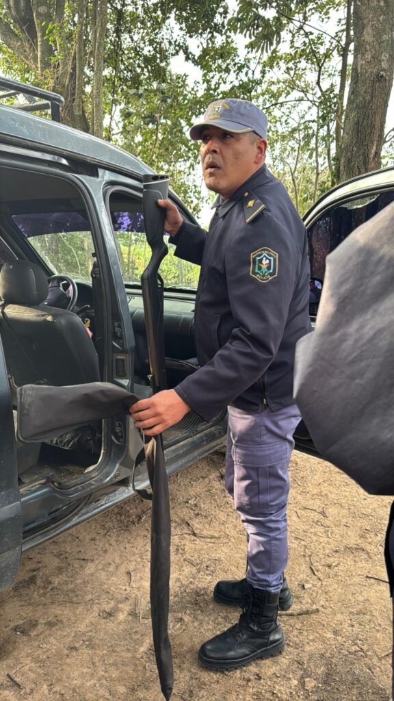 Durante la inspección, los efectivos secuestraron cuatro cuchillos, un machete, un hacha y la culata de un aire comprimido. En paralelo, también fueron identificados dos hombres que se encontraban pescando en la zona. En el vehículo que utilizaban, un Renault Kangoo, la Policía halló una escopeta calibre 410 sin numeración visible y un aire comprimido.