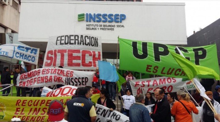 Gremios docentes se movilizaron este 20 de febrero y presentaron notas formales ante el titular del Instituto de Seguridad Social, Seguros y Préstamos (InSSSeP), Rafael Meneses, y el gobernador Leandro Zdero, en reclamo por la situación salarial y la cobertura de salud.