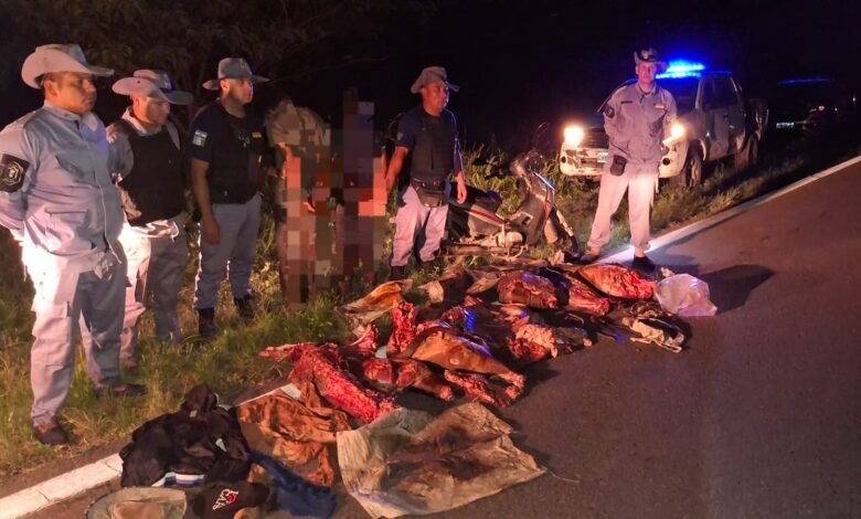 Realizaron señas para que se detengan y aunque realizaron maniobras evasivas desistieron y pararon la marcha a escasos metros. Descubrieron que transportaban en una bolsa y debajo del baúl más de 200 kilos de carne vacuna y cuero. Los jóvenes de 13 y 15 años no supieron dar explicación sobre lo hallado.