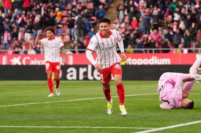 El primer festejo personal del argentino en España llegó en el segundo minuto del tiempo agregado. Tras un pase del ucraniano Viktor Tsygankov, Echeverri controló dentro del área, giró entre los dos defensores y definió con un derechazo cruzado que superó al arquero rival. Así selló la goleada y celebró su primer tanto con la camiseta de Girona.