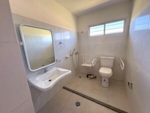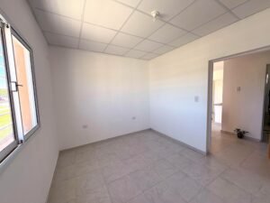 Las casas son de dos dormitorios y cuentan con estar, comedor, cocina, baño y lavadero, con una superficie total de 64 metros cuadrados cada una. Además, se ejecutó la infraestructura integral del barrio, que incluye red eléctrica, red vehicular y pluvial, y red peatonal, lo que también permitió la generación de puestos de trabajo.