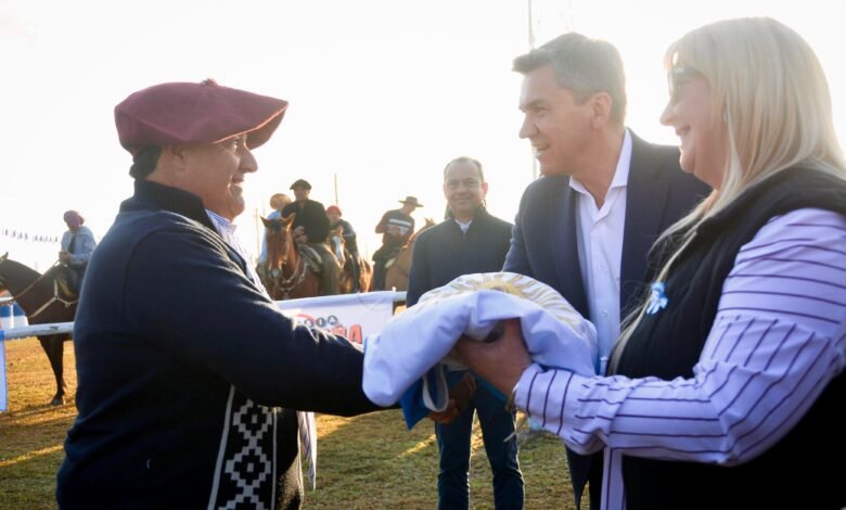 El gobernador Leandro Zdero acompañó este domingo del 1° Festival Provincial de la Bandera Argentina, realizado en la localidad de Colonia Popular. Luego de realizar el izamiento, junto a la vicegobernadora Silvana Schneider y a la intendente Mariela Soto, dio un discurso en el que destacó el valor simbólico y trascendental de la bandera argentina, así como la importancia de mantenernos unidos, incluso en momentos adversos. “Es un orgullo estar aquí en Colonia Popular en este festival que se tiñe de celeste y blanco, colores de nuestro corazón, pero fundamentalmente estos colores que terminan uniendo a todos los argentinos más allá de ideologías o pertenencias”, resaltó.