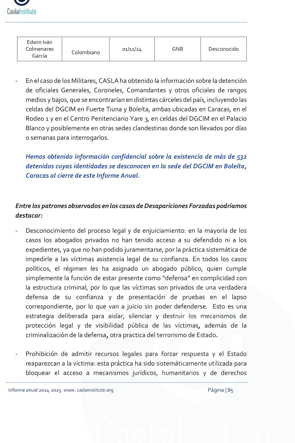 Pero Maduro rechaza los reclamos de Estados Unidos, Colombia, Argentina, Italia, España e Israel, alega una conspiración mundial en su contra, no revela los lugares de detención de los 31 desaparecidos, y acelera sus juzgamientos sin aportar una sola prueba legal y fehaciente.