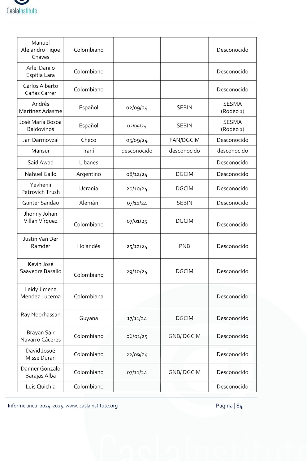 A continuación, las identidades y las nacionalidades de los 31 presos políticos que -hasta ahora- comprobaron CASLA e Infobae: