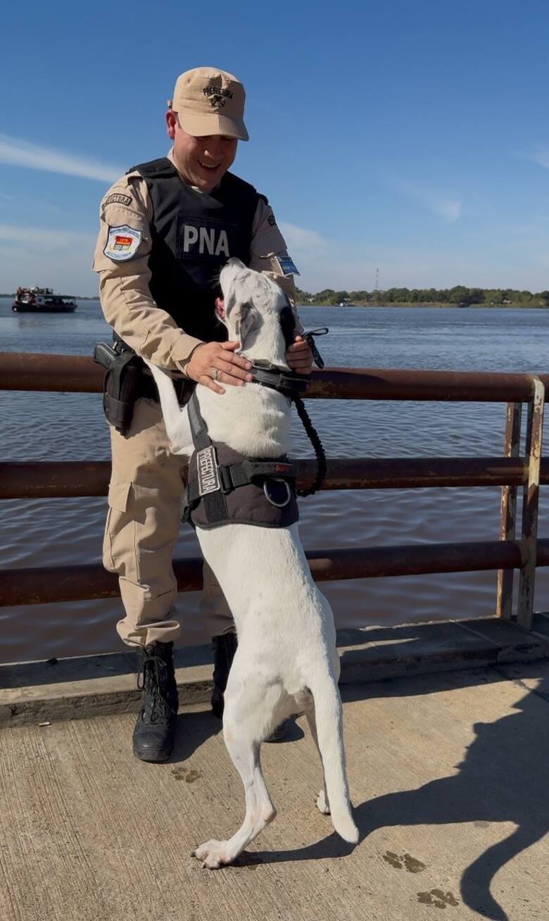 La ceremonia se hizo frente al río y, según el cabo primero César Abel Gordillo, su guía, fue igual a la que se realiza cuando se retira cualquier prefecto. “Para nosotros, ella es una compañera de trabajo más. Prácticamente convivimos las 24 horas. Nos ha acompañado en inmensos operativos. En su despedida, a algunos de mis compañeros se les cayeron un par de lágrimas”, cuenta a LA NACION Gordillo, de 33 años, quien decidió adoptar a la “agente canina” retirada y llevarla a vivir con él en su nueva etapa de descanso.