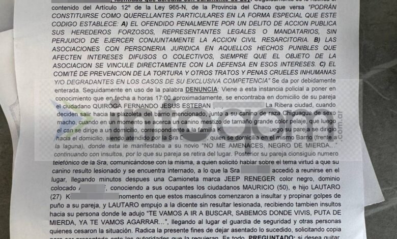 El grave ataque ocurrido en un barrio privado de Resistencia —que dejó como saldo la muerte de un perro –Dante- y lesiones contra su dueño, Fernando Quiroga Rach— continúa generando repercusiones. Entre ellas, se suma la intervención del estudio jurídico Rey Gulino & Asociados, que envió una intimación al portal Infoqom tras la publicación de la noticia.
