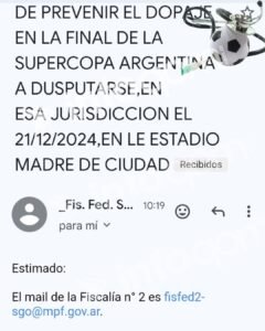 La denuncia, a la que accedió Infoqom, la hace Aldo Sergio Parodi, referente de la ONG Deportes sin drogas.