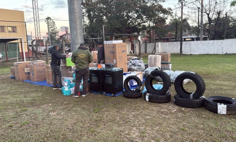 Con conocimiento y orientación de la Fiscalía Federal Nº 1 de Formosa, se trasladó el utilitario hacia las instalaciones del Escuadrón 15 “Bajo Paraguay”. En presencia de testigos se contabilizó: 14 cocinas, 10 aires acondicionados, 5 televisores, 2 Smart TV, 12 parlantes, 1 lavarropas, 1 heladera, 7 cubiertas de auto, 4 llantas de vehículos, 118 cartones de cigarrillos, 1 máquina de cortar cabello, 1 pava eléctrica, 1 licuadora, 4 unidades interiores de aire 12.000 BTU, 22 teléfonos celulares, 2 discos solidos de “12TB”, 40 linternas, 9 masajeadores faciales, 4 Handy, 5 espejos con luz led, 5 radios portátiles, 12 auriculares Impods 12, 8 soldadores eléctricos, 24 perfumes, 4 mono patín, 4 hornos eléctricos, 36 artículos de indumentaria, 8 artículos de cosmética, 8 juegos de sabana, 9 set de toallas, 40 platos de porcelana, 175 pares de zapatillas, 90 piezas de bazar y 39 termos. El avalúo total de lo secuestrado asciende a 50.903.000 pesos.