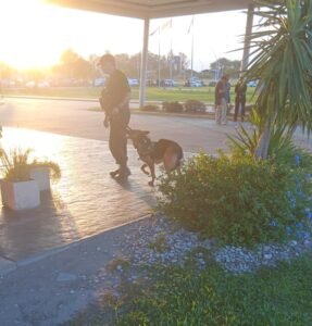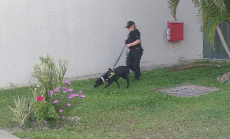 De inmediato, se desplegó el protocolo de seguridad, que incluyó inspecciones en salones, accesos, áreas técnicas y espacios del escenario, con la participación de la unidad de explosivos y canes, con los perros Luna y Pentrita, además de la evacuación total del edificio.