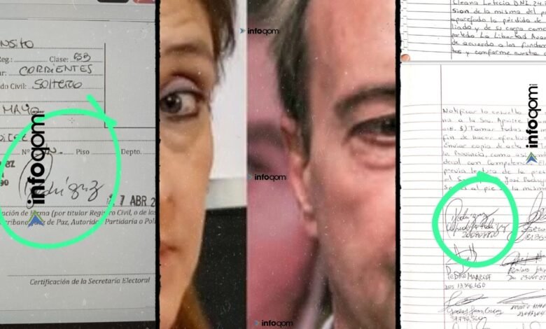 Infoqom accedió a dos documentos clave: el acta de expulsión firmada por Rodríguez y una de las fichas de afiliación cuestionadas. En ambas, aparece la misma rúbrica del dirigente. “Si no es su firma, el falsificador es muy bueno”, ironizó una fuente vinculada a la causa.