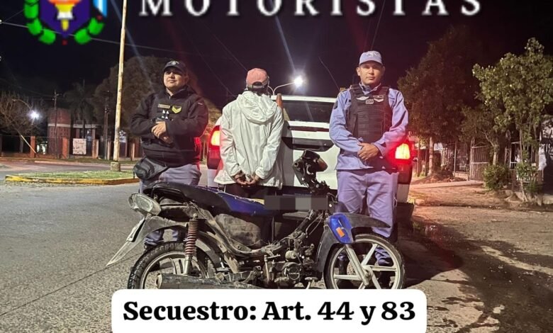 En el marco de un operativo de control vehicular y prevención, denominado «Motorizado Lince», efectivos del Grupo Motoristas procedieron a la demora de un hombre que circulaba en una motocicleta sin documentación y en aparentemente estado de ebriedad.