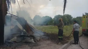 A pesar de la rápida intervención del equipo de emergencia, el fuego consumió por completo la estructura. Según los primeros datos relevados, en el interior no había mercadería ni objetos de valor al momento del hecho.