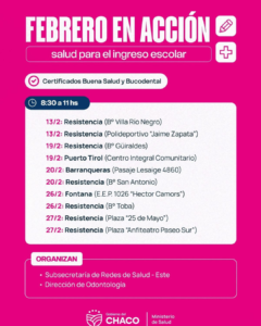 En el marco del inicio del ciclo lectivo, el Ministerio de Salud de la Provincia, refuerza acciones sanitarias destinadas a acompañar el ingreso escolar y promover el cuidado integral de la salud de los chaqueños.