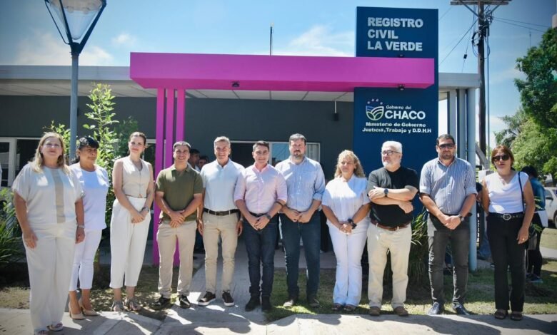 Este jueves, el gobernador Leandro Zdero junto al ministro de Gobierno, Julio Ferro y al intendente de La Verde, Federico Peón, inauguraron las refacciones integrales y las renovaciones edilicias del Registro Civil de La Verde, edificio que había sufrido importantes daños a causa de una cola de tornado, ocurrida a fines del 2025.