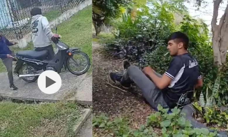 El violento robo ocurrió cuando la víctima, un joven que caminaba acompañado de una amiga, fue interceptada por el delincuente, quien le golpeó la cabeza y le sustrajo la moto. Fuentes policiales indicaron que el sospechoso había sido expulsado del barrio tras ser visto consumiendo drogas bajo un árbol.