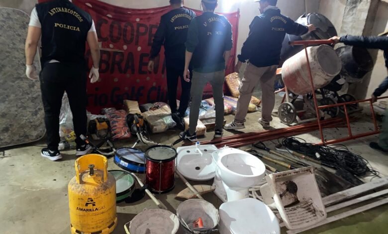 Se halló, además, gran cantidad de herramientas, alimentos vencidos, instrumentos de percusión y una bandera con inscripción de la cooperativa “La obra en mis manos”. Todos estos elementos habrían sido entregados por el Ministerio de Desarrollo Social en la gestión del gobierno anterior. Se procedió al secuestro de todo y se iniciaron actuaciones judiciales con intervención de la Fiscalía Penal N° 15.