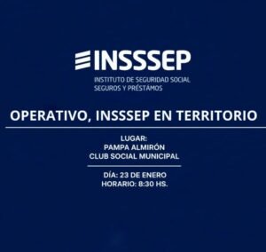 El Instituto de Seguridad Social, Seguros y Préstamos (INSSSEP) llevará adelante el Operativo INSSSEP en Territorio en la localidad de Pampa Almirón, en el marco de las acciones que el organismo impulsa para fortalecer la presencia institucional y garantizar el acceso equitativo a sus servicios en toda la provincia.