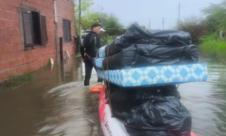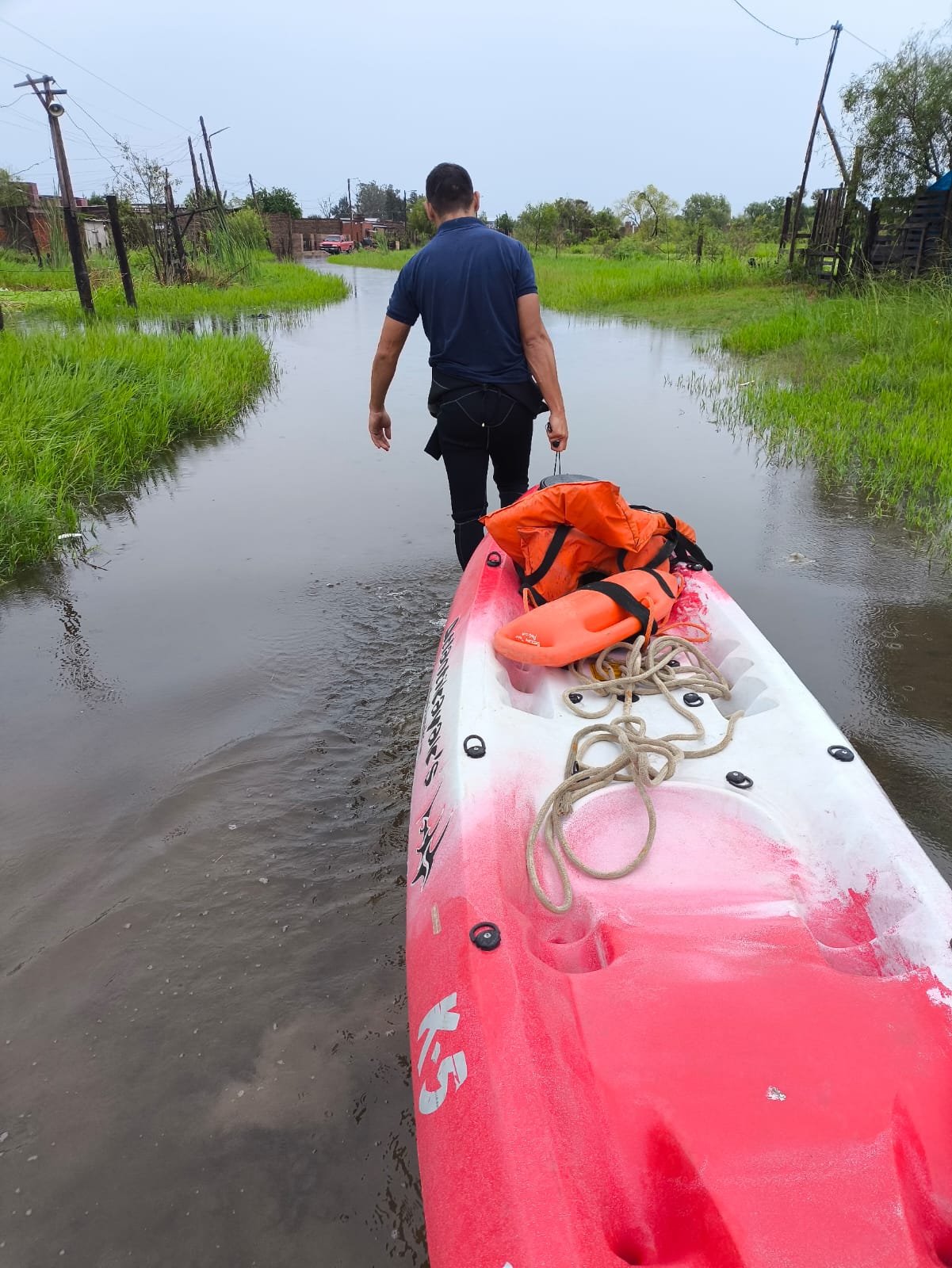 Al arribar allí, constataron que calles del barrio se encontrarían anegadas, por ello mediante la utilización de kayak identificado policialmente como K-3, equipo neoprene y torpedo se adentraron hasta el domicilio de una mujer, quien junto a sus 3 hijos menores y su esposo se encontrarían varados en su domicilio por la inundación.