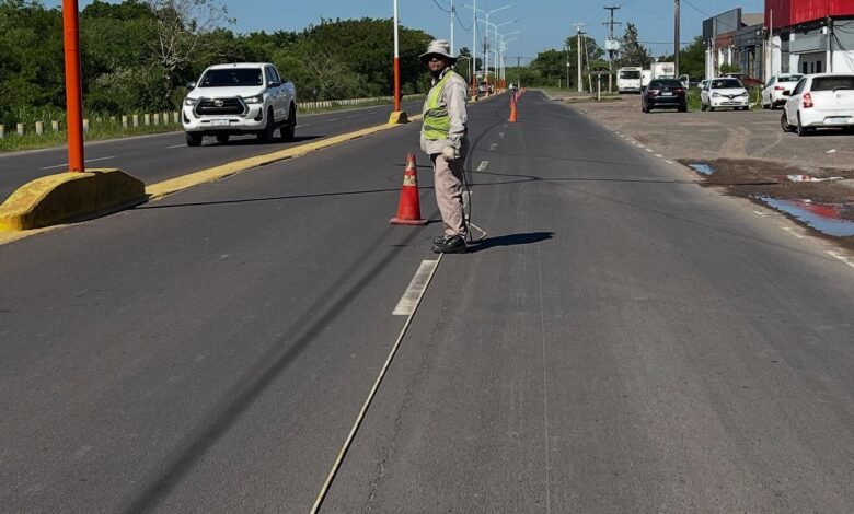 Durante la jornada de este lunes se realizan tareas de demarcación de calzada en los accesos a la ciudad de Resistencia, específicamente sobre la avenida Sabin.