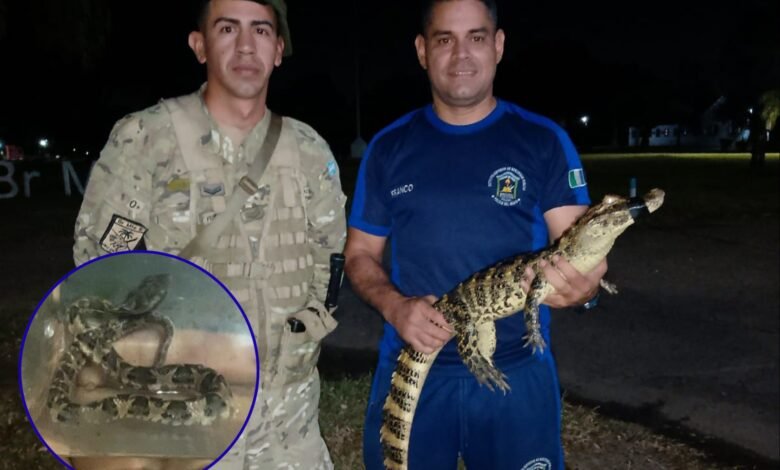 Personal especializado de la Policía del Chaco intervino en dos procedimientos simultáneos en la ciudad de Resistencia, donde se logró rescatar un yacaré overo hallado en una unidad militar y una serpiente venenosa en una vivienda del barrio San Diego.