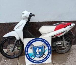 Agentes de la División Sustracción Vehicular recuperaron una motocicleta que había sido robada horas antes, durante un patrullaje preventivo realizado en Pasaje Carlos Hardy de la ciudad de Resistencia.