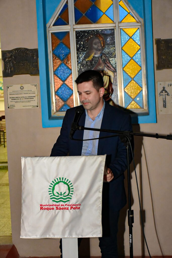 El acto contó con la presencia del intendente Bruno Cipolini; el ministro de la Producción Oscar Dudik, el Obispo Greco-Católico Monseñor Daniel Kozelinski; representantes de Confederación de Colectividades; miembros de la Asociación Ucraniana, representantes de instituciones intermedias; funcionarios municipales y Concejales.