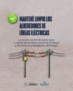 -Mantener limpios los alrededores de las líneas eléctricas: la acumulación de pasto seco, ramas y residuos aumenta el riesgo y favorece la propagación del fuego.