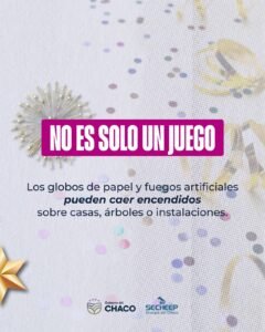 Secheep enfatiza que la pirotecnia no constituye un juego, y que su uso implica riesgos para la salud de las personas, los animales y también para las instalaciones eléctricas.