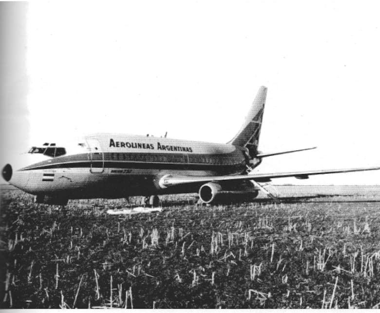 El Boeing 737-200 de Aerolíneas Argentinas, secuestrado por la organización Montoberos, en octubre de 1975, para facilitar la fuga de los guerrilleros que tomaron el Regimiento de Infantería Monte 29, de Formosa. Gentileza Ceferino Reato