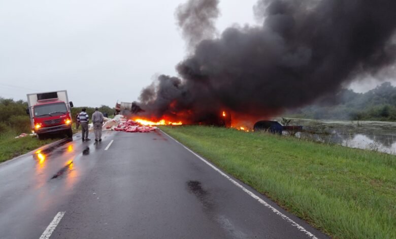 Tragedia en Villa Berthet: un muerto en un choque entre camiones que terminaron incendiados