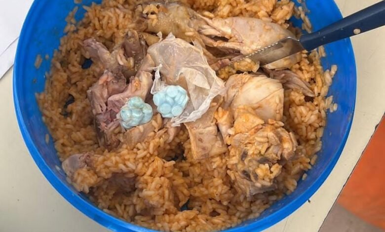 Los comprimidos estaban escondidos dentro de una bolsa plástica y tapados por el guiso de pollo, que una mujer llevó a un detenido. La señora ahora está detenida por disposición de la Fiscalía Antidrogas.