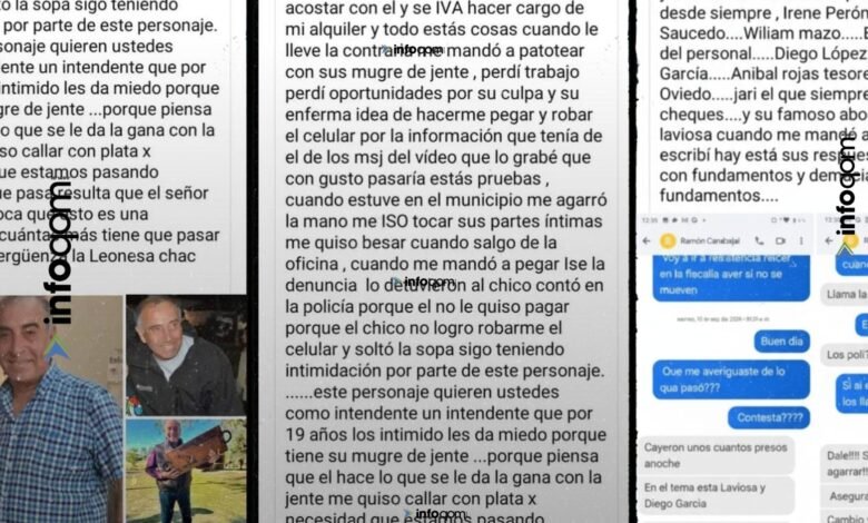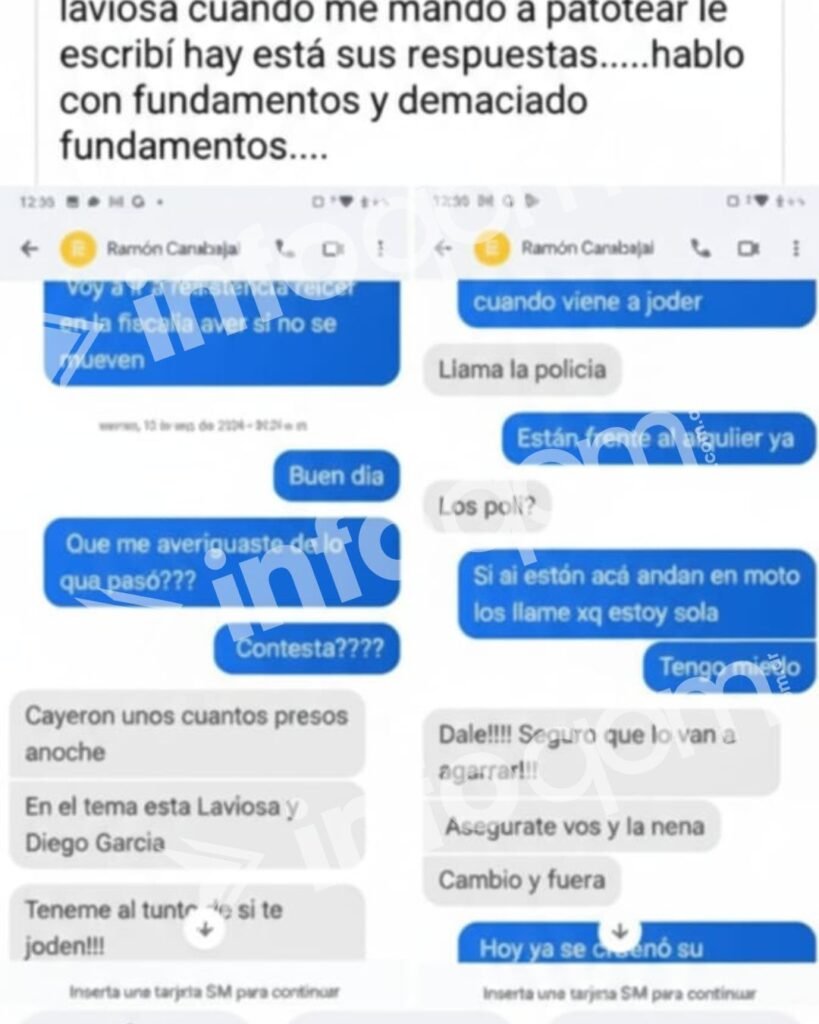 Las imágenes difundidas incluyen capturas de conversaciones atribuidas a un hombre identificado como Ramón Carabajal, en las que se leen frases como: