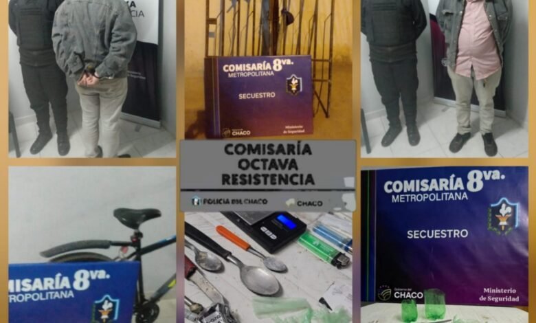 Durante el procedimiento se secuestraron tres motocicletas (una sin dominio, una Zanella 110 cc y una Motomel Blitz), una bicicleta rodado 29, una balanza digital en funcionamiento, pipas, cucharas, cuchillos, encendedores y recortes plásticos utilizados para fraccionar estupefacientes.